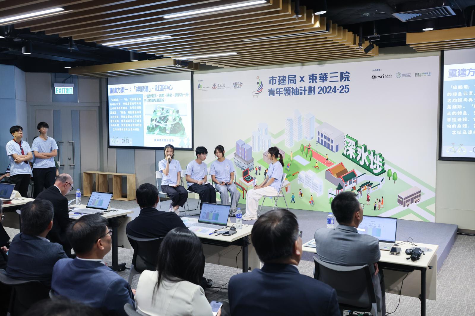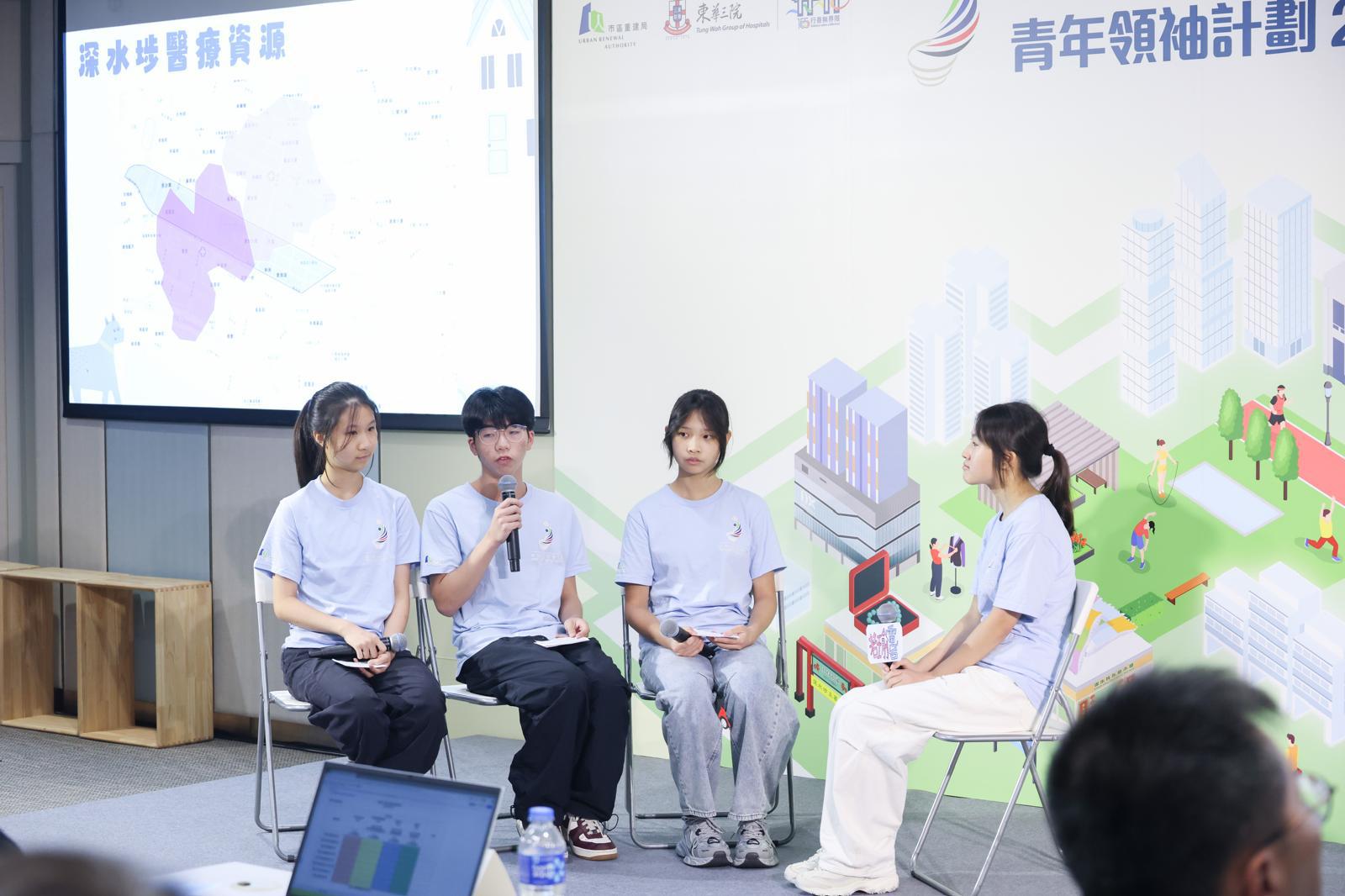 市區重建局(市建局)與東華三院合辦「青年領袖計劃」,以培育年輕人的創意、解難、溝通、團隊合作、項目管理等多元才能為目標,裝備學生成為未來領袖。本校8位同學在東華三院屬下18間中學中脫穎而出,入圍8強,進入下一輪的複賽及公眾展覽活動。