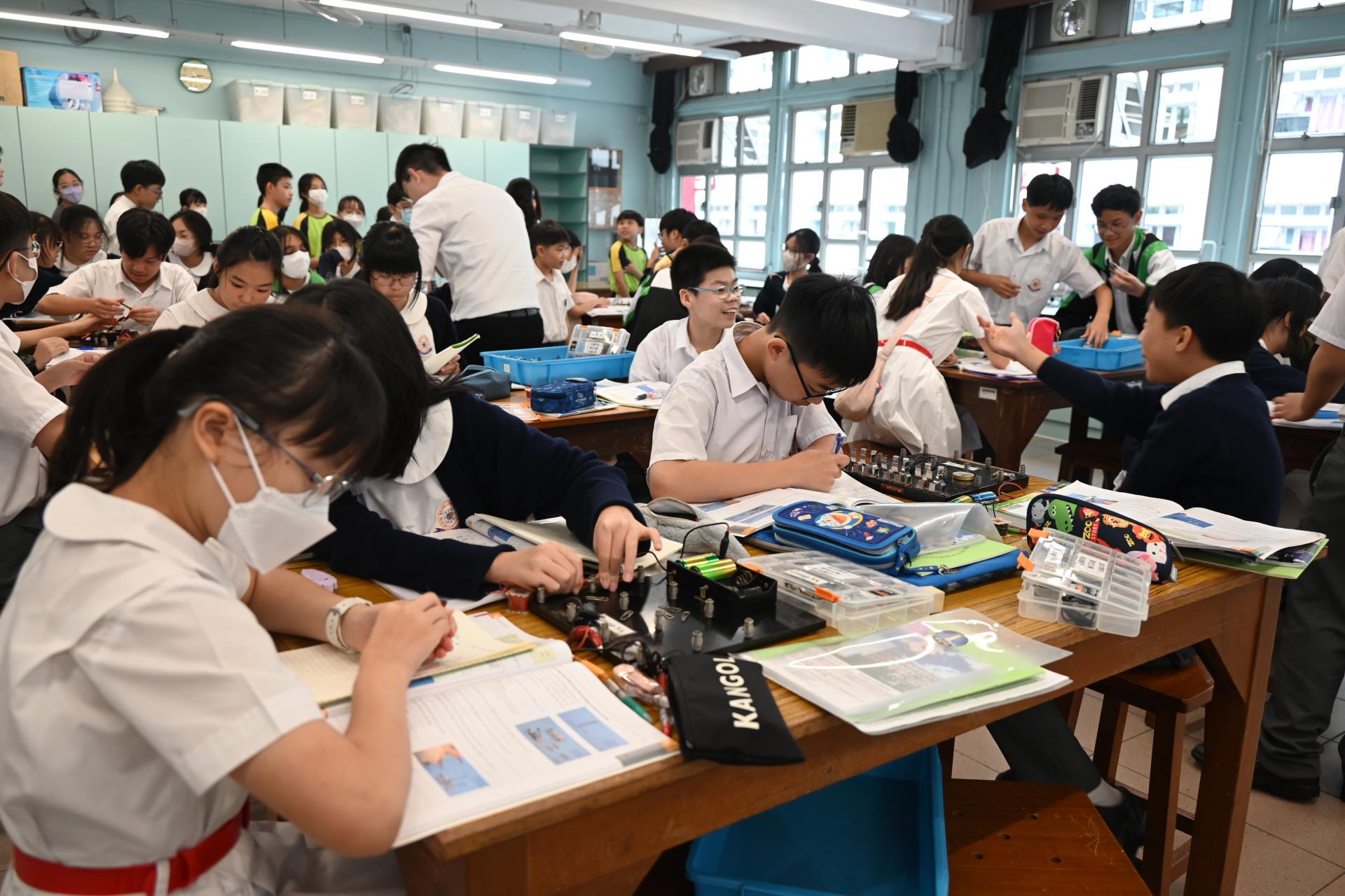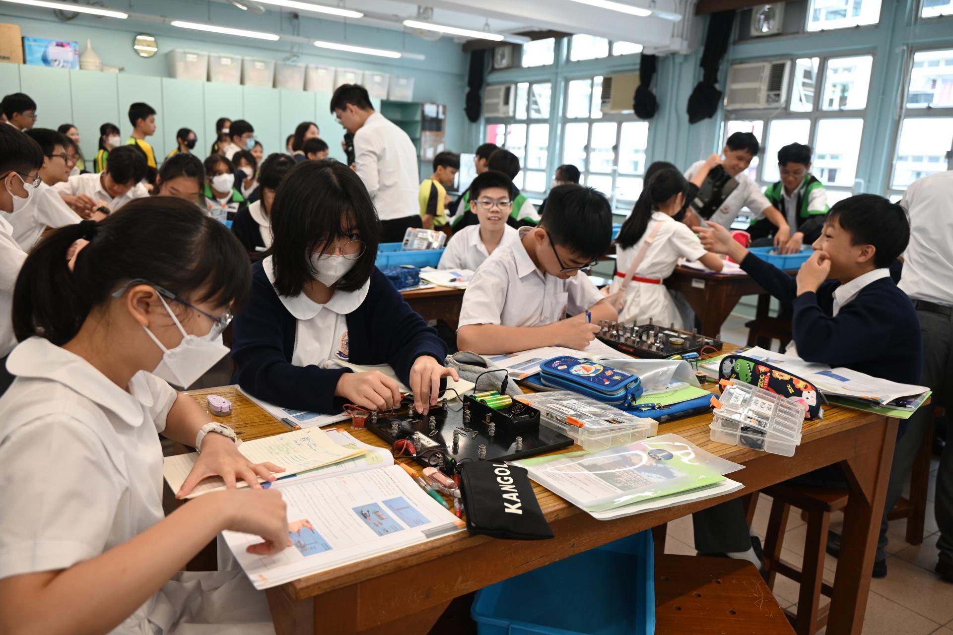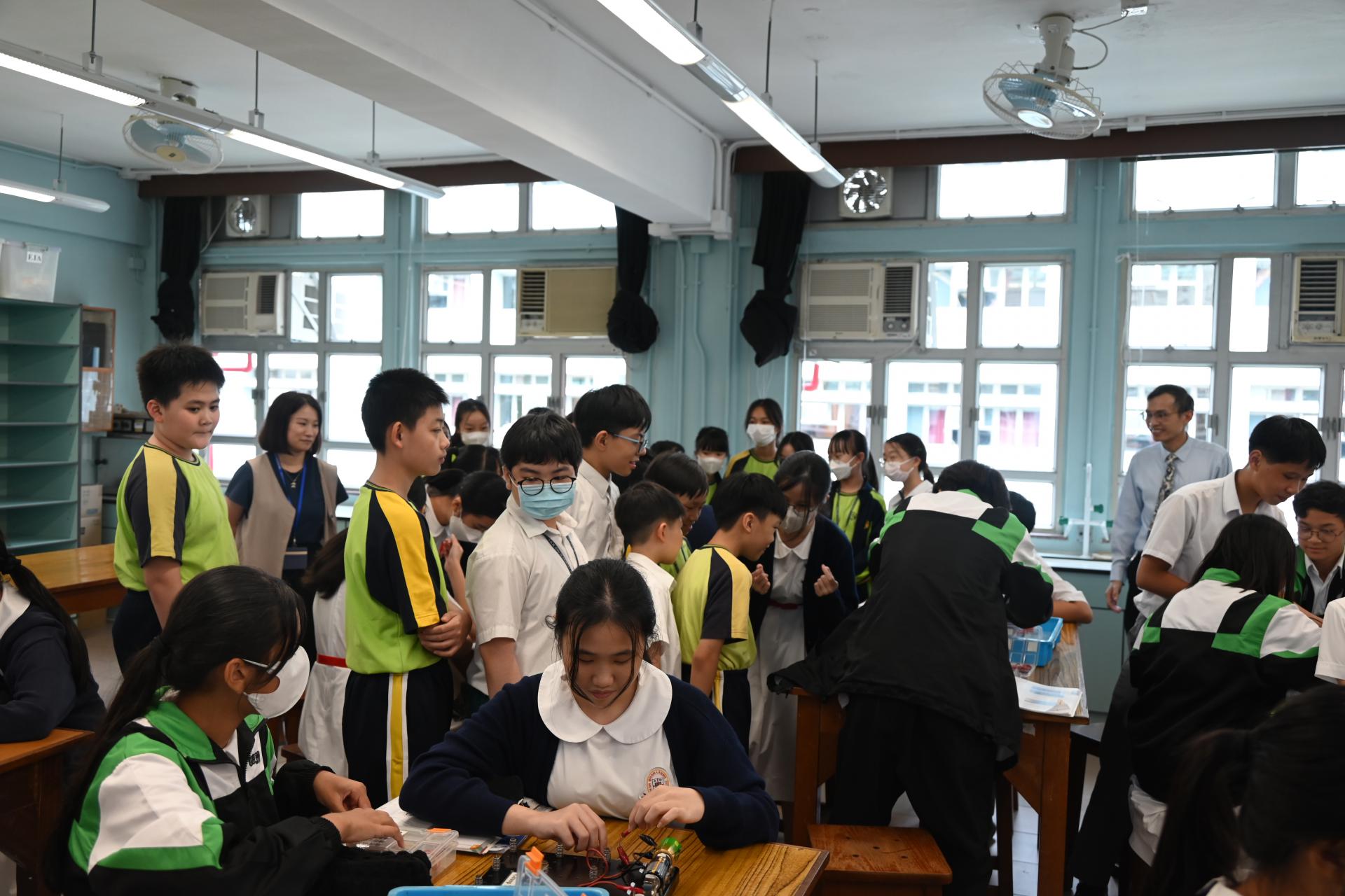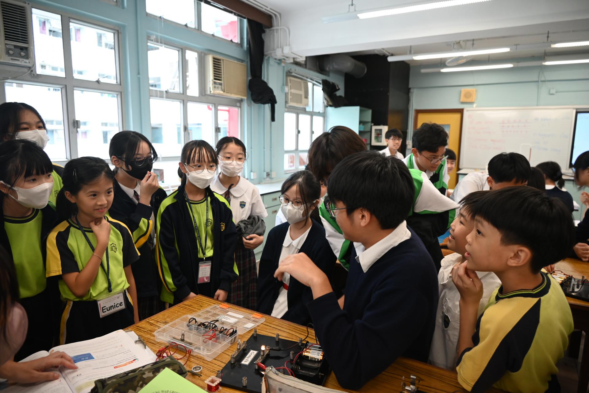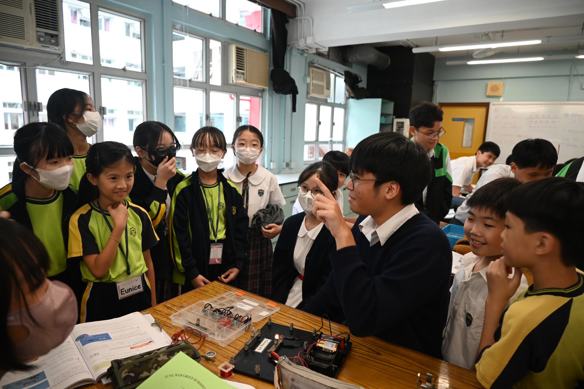 科學實驗室配備先進器材,推動科學探究與創新學習,本校同學更熱情指導同學操作實驗的技巧;參觀期間,大家一同觀摩了有趣的科學實驗,包括電路的物理現象展示。同學在科學堂上 不僅學習了理論知識,更動手操作實驗儀器,提升了觀察及解難能力。