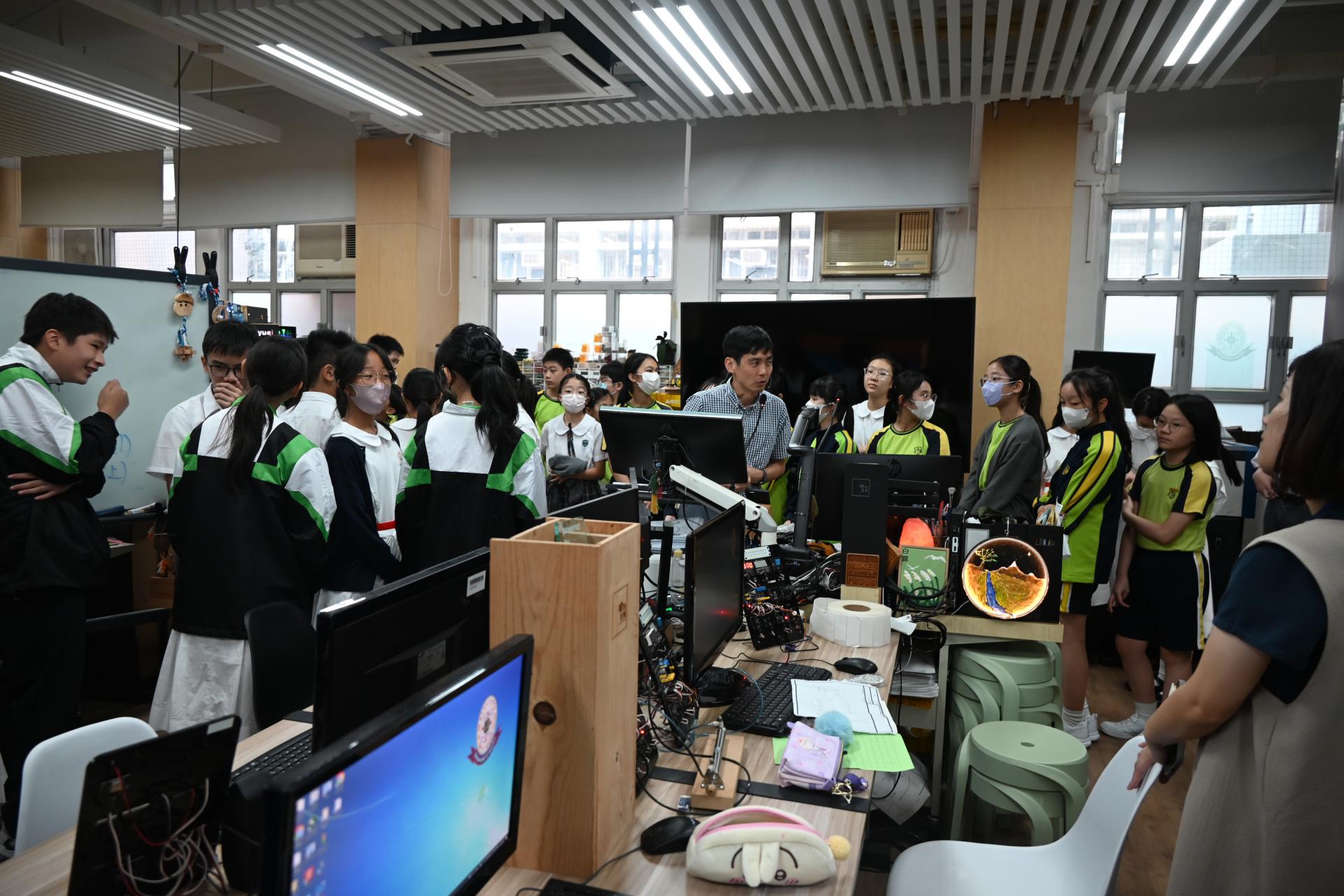 隨後,來訪同學分為三組,在老師帶領下分別參觀本校多個特色課室: