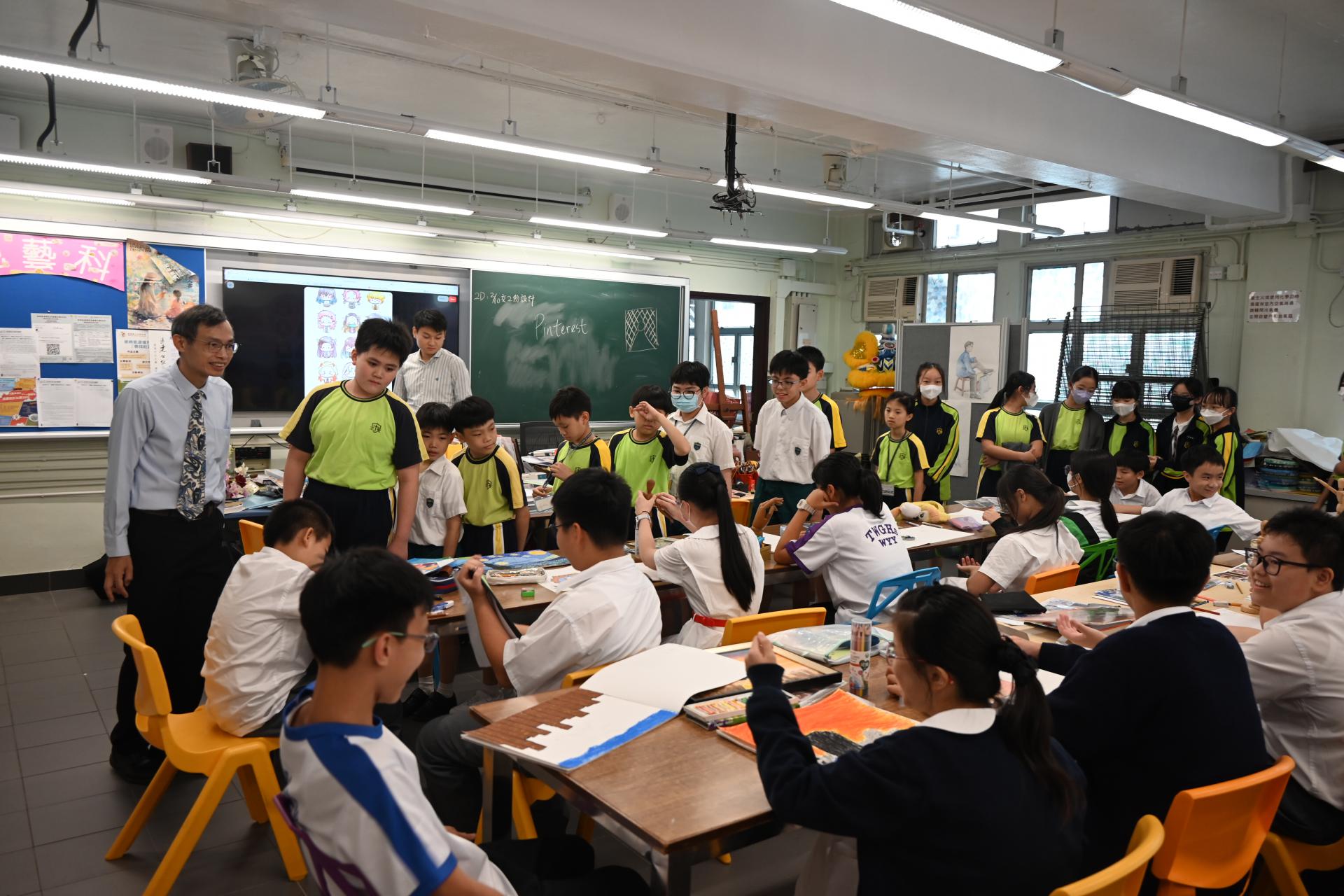 視藝室設有多元化藝術材料及創作空間,啟發同學藝術潛能。同學可以在課堂上一展才能,繪畫自己的作品,同時激發了他們的藝術想像力與創意。大家紛紛讚嘆校園濃厚的藝術氛圍。