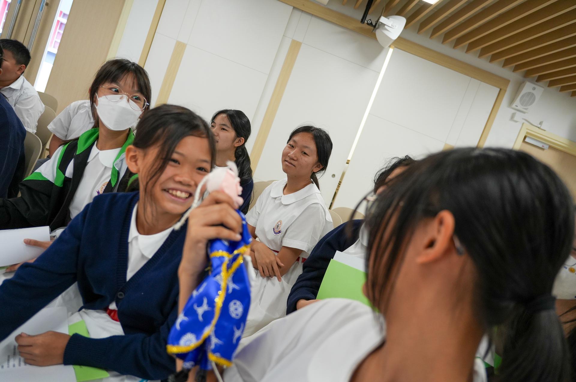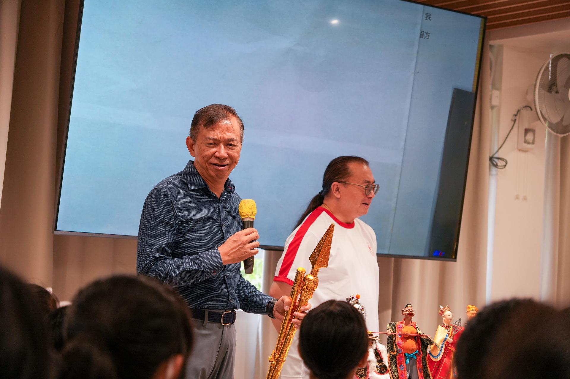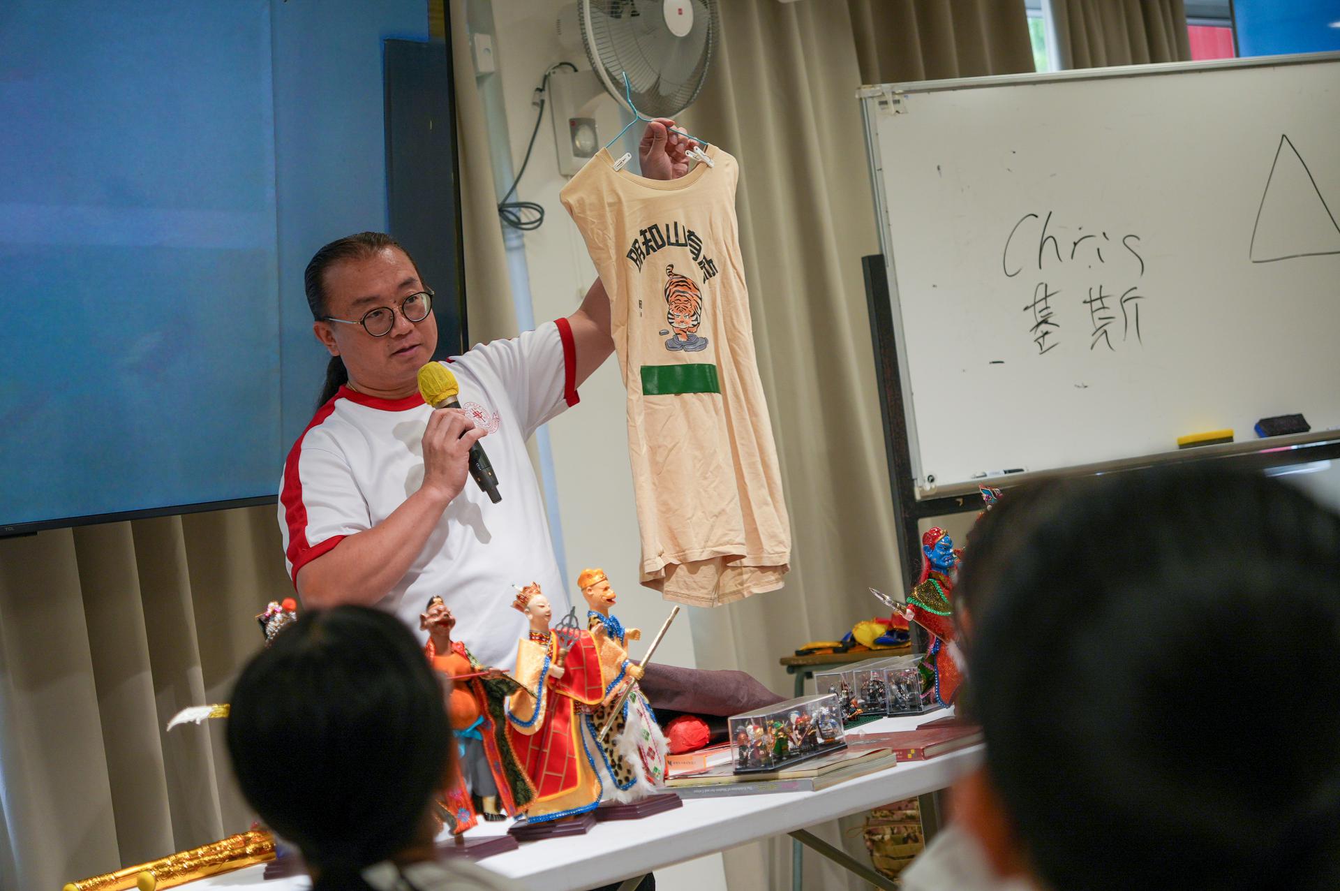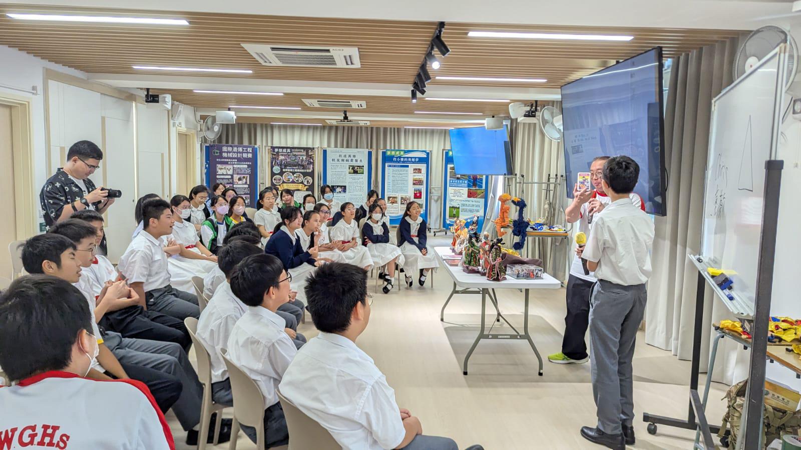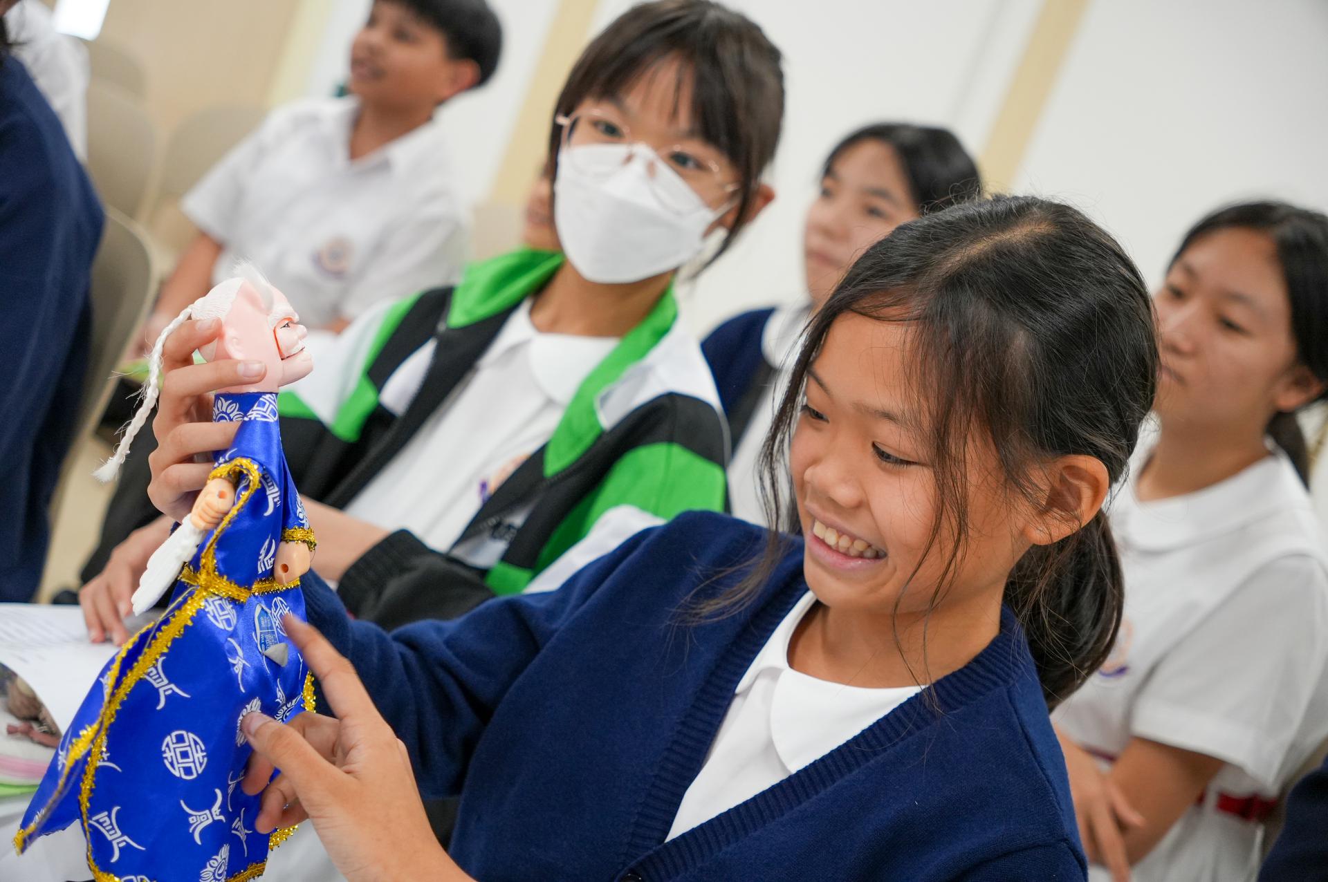 本校家長校董及家長教師會執委陳兆聰先生於9月26日蒞臨本校,與中文科及圖書館合辦「布袋木偶*劇藝課節」,以封神演義、三國演義及西遊記等布袋偶作為引子,藉著互動教育形式,引導同學從時,地,人,事中攝取學習重點及特點,增進吸收知識的效應。 為提高同學學習動機、鼓勵同學自主學習、並增加同學認識傳統文化的機會,陳先生運用表演藝術(肢體/語言表達)、心理學/行為學(內省心理測驗/人物言行分析)、音樂(聲音感觀)、語言智能(語文/語言形象化)及視覺藝術(觀察及,圖像/臉譜所表達的內在含意)等範疇,讓同學感受另一種學習體驗。同學都熱烈投入課堂,積極運用肢體動作、語言等表達所思所想。