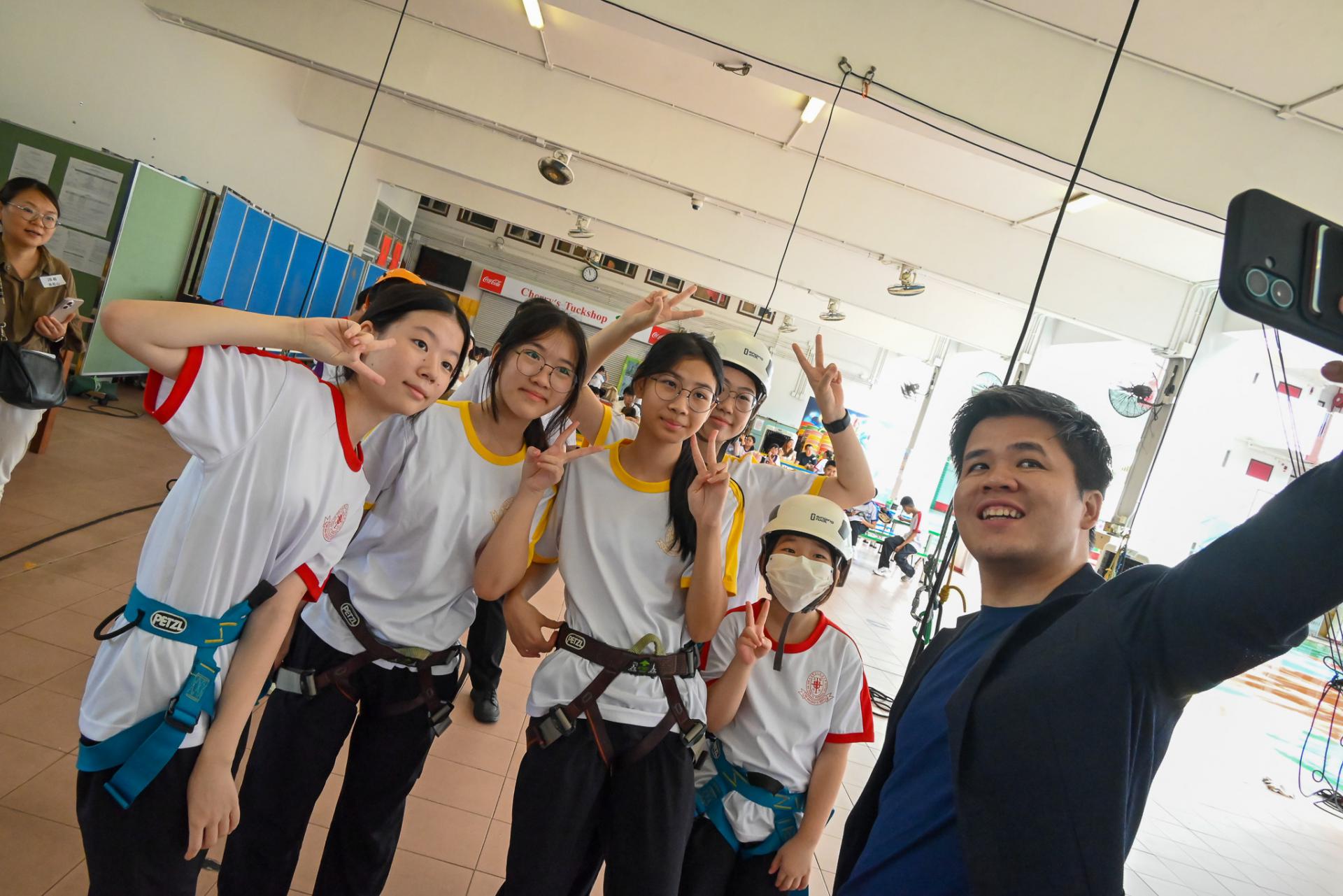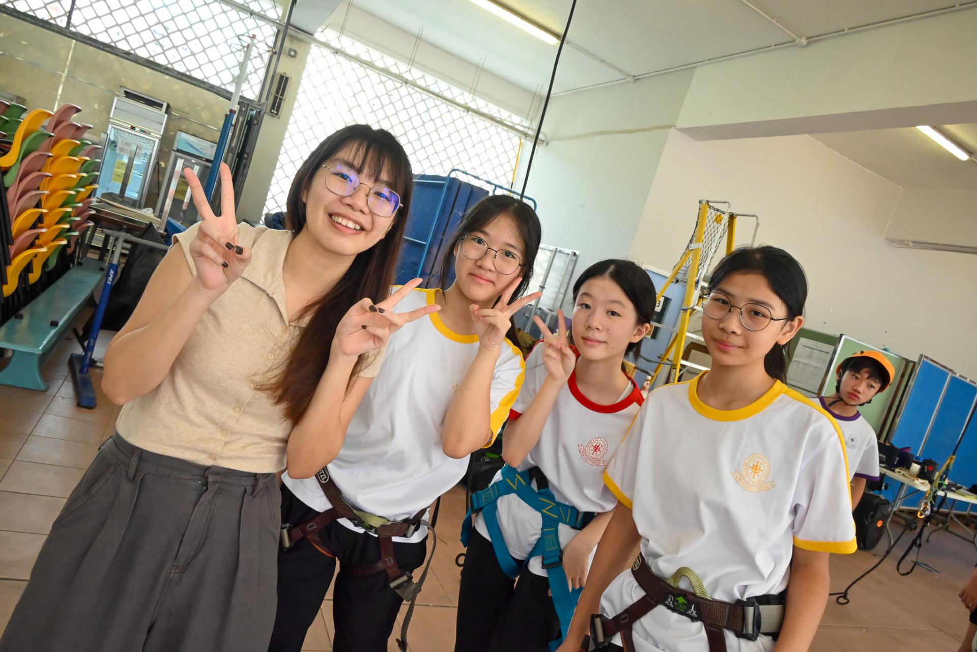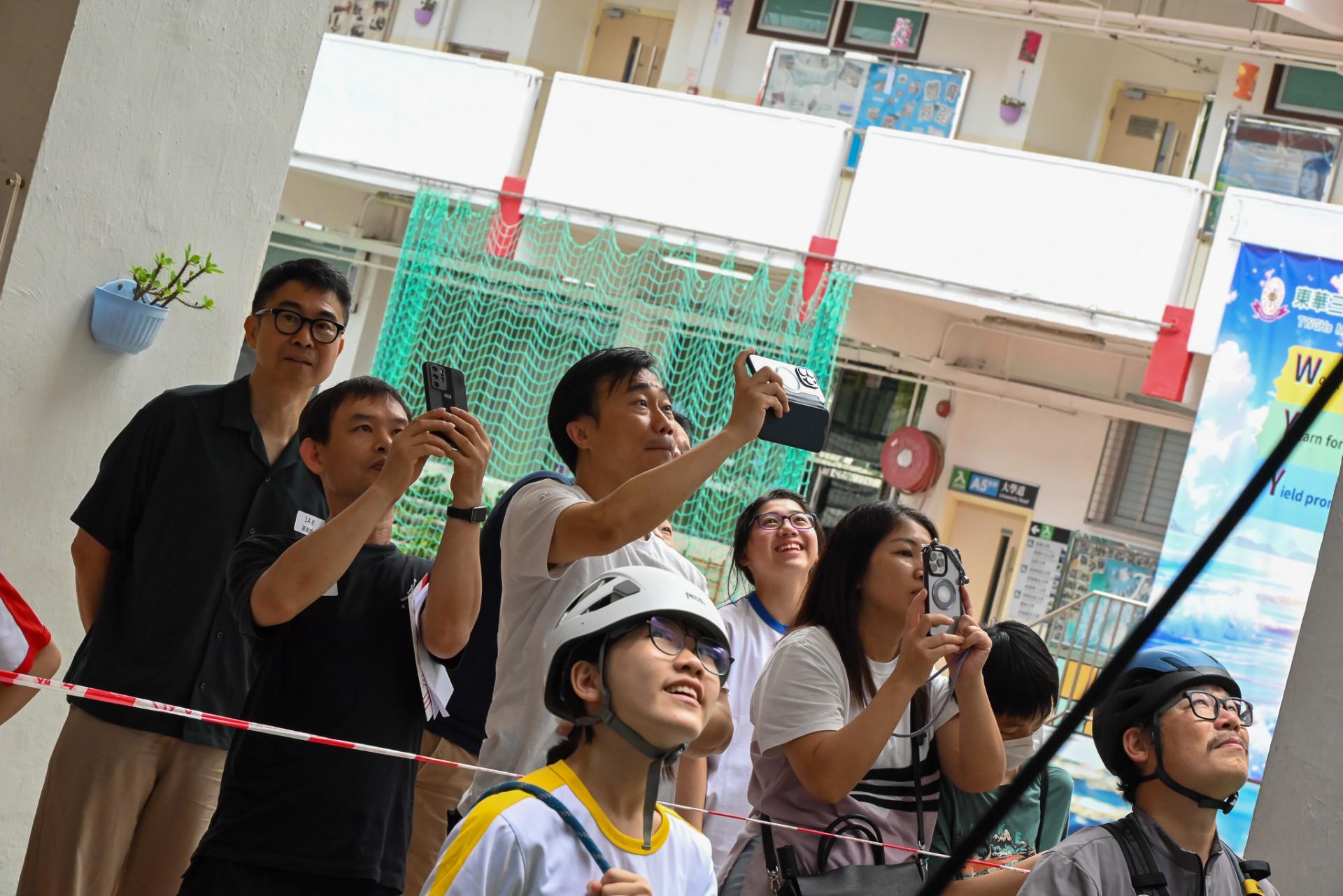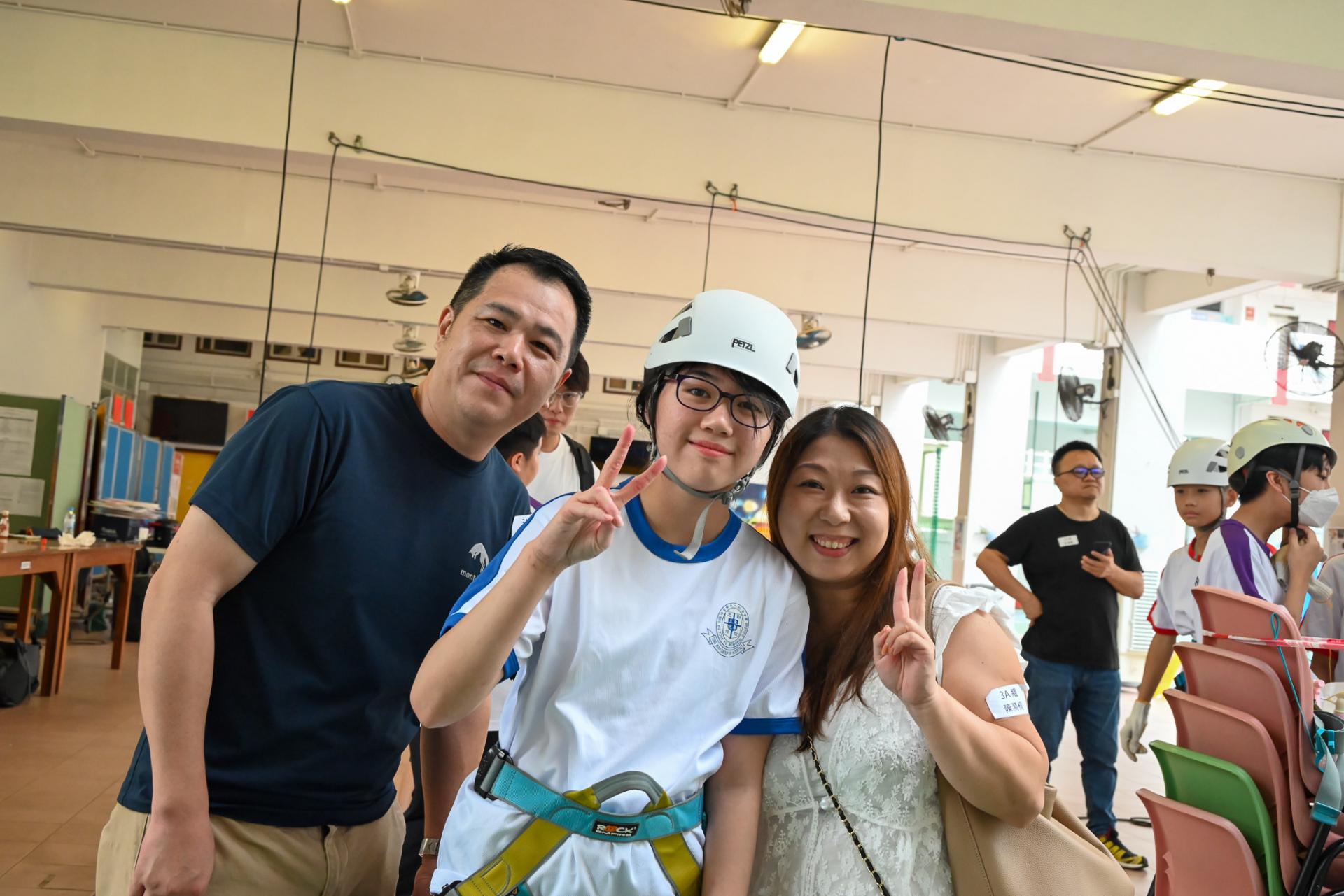 1A班學生及家長於10月12日參與「勇敢踏出第一步:沿繩下降高結構歷奇」輔導活動,透過挑戰自我、突破心理障礙,同學可學習以積極樂觀的態度面對困難與逆境,勇敢踏出成長的第一步。活動設計結合高結構歷奇元素,讓學生在安全指導下完成沿繩下降任務,從中提升自我認識、建立自信心,並培養團隊合作與溝通技巧。