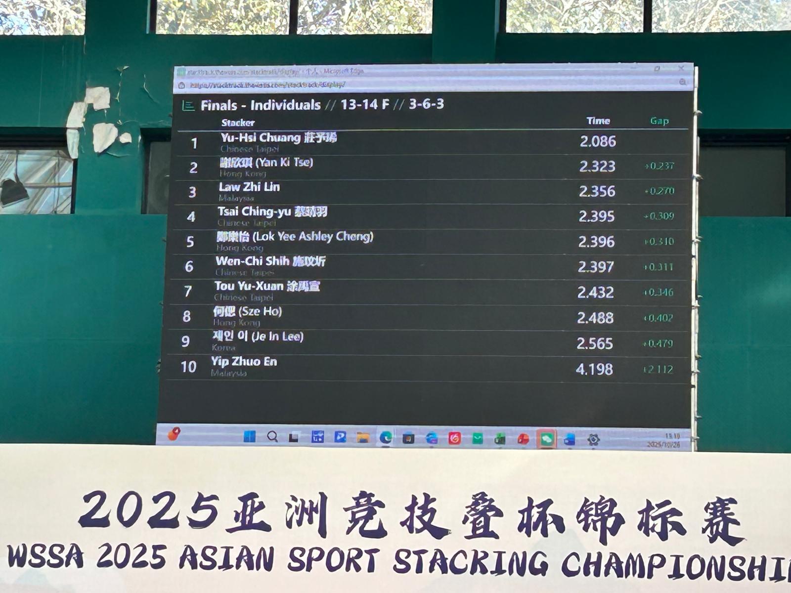 2D何偲同學於十月 代表中國香港參加2025 亞洲競技疊杯錦標賽,在U13-U14F 項目中取得第八名次,亦是她個人賽的最佳成績。