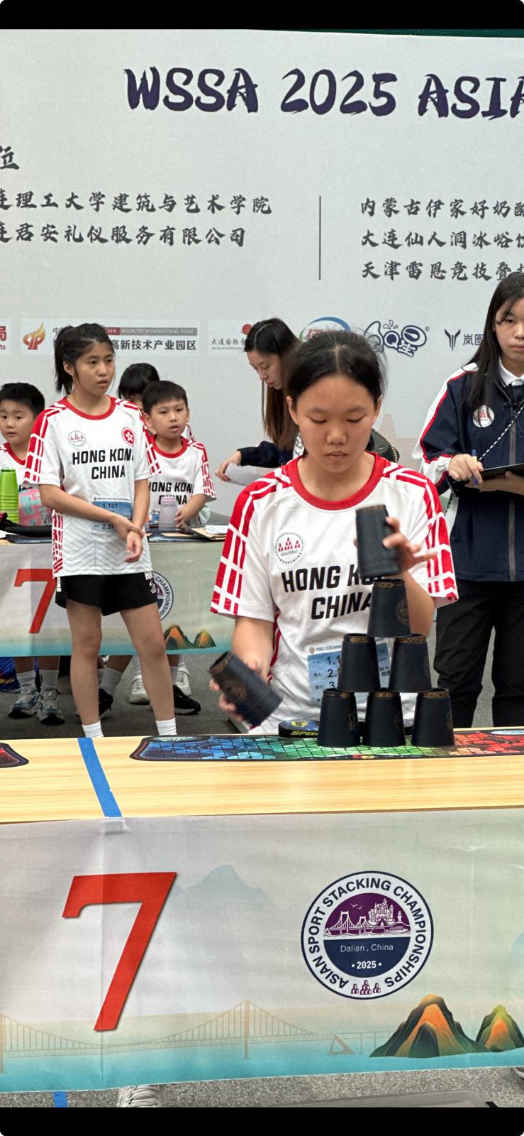『我是現役競技疊杯中國香港代表隊成員,十分榮幸於剛過去的十月尾我代表中國香港參加2025 亞洲競技疊杯錦標賽。今屆亞錦賽舉辦城市是中國大連,經過一連三天多場比賽,我在U13-U14F 項目以第八名次完成,我感到十分滿意。今次參賽,除了讓我感受亞洲各國頂尖選手的實力,更讓我反觀很多需要提升自己的地方,例如比賽時的心理素質,在超高比賽壓力下仍發揮應有的水平。比賽固然想爭取好成績,但我亦時常提醒自己:摔了跟頭不要怕!因為我是不倒翁😊』