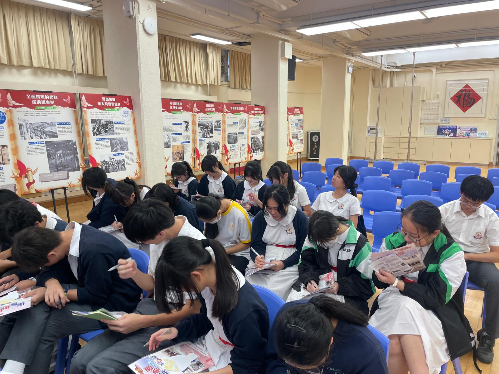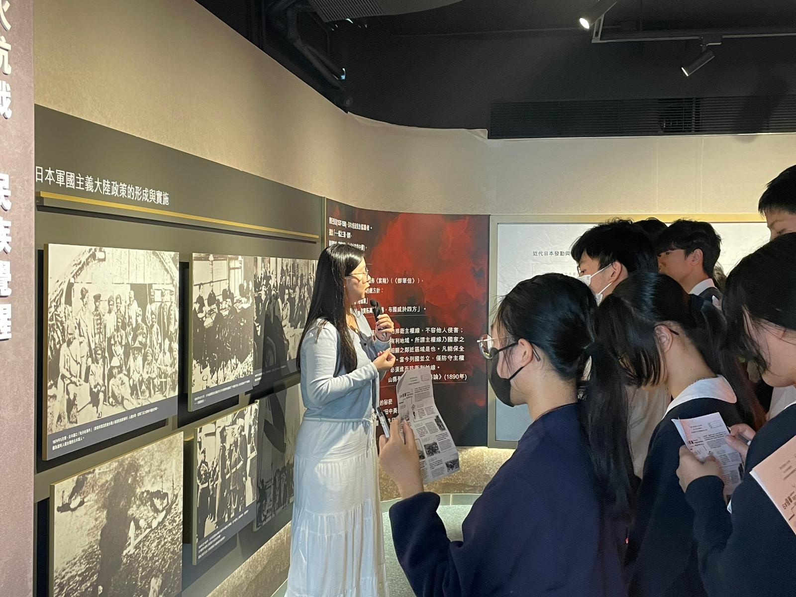 為紀念中國人民抗日戰爭勝利80周年,本校中四級中國歷史科於11月6日參加由愛國教育支援中心舉辦的「抗日戰爭勝利80周年專題展覽」。在導賞員的講解下,同學一邊閱覽展板內容及歷史照片,一邊了解國家抗戰的經過與歷程。再導賞過後,同學就戰爭與和平作出反思,希望能夠銘記歷史,珍愛和平,共創未來。