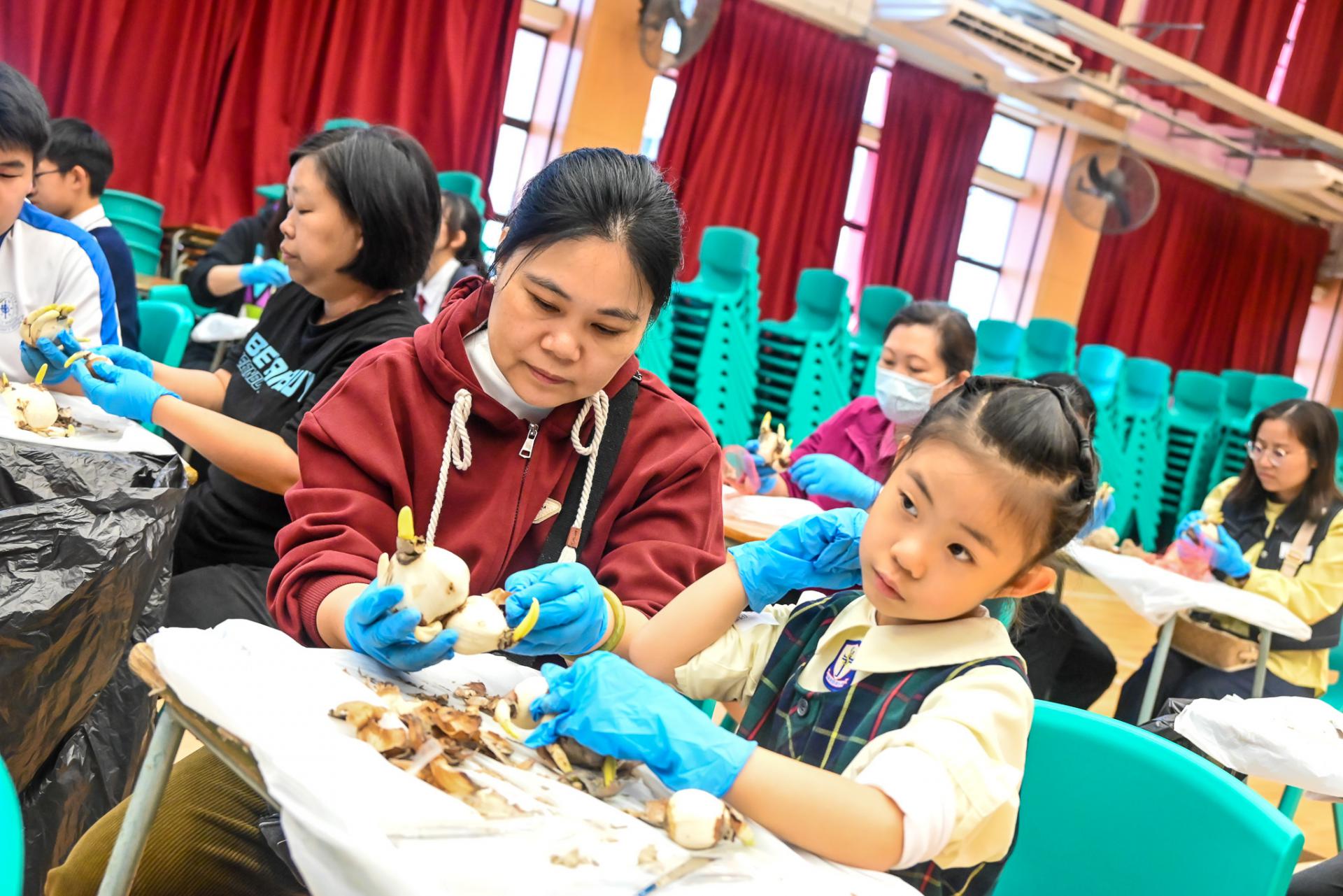 The blooming of narcissus flowers symbolises renewal and the beginning of hope. To welcome the arrival of the Lunar New Year, our Parent-Teacher Association joined hands with the Parent-Teacher Association of Shek Lei St. John's Catholic Primary School to co-organise the “Narcissus Planting Workshop,” allowing parents and students to experience the joy of cultivation together in a festive atmosphere.