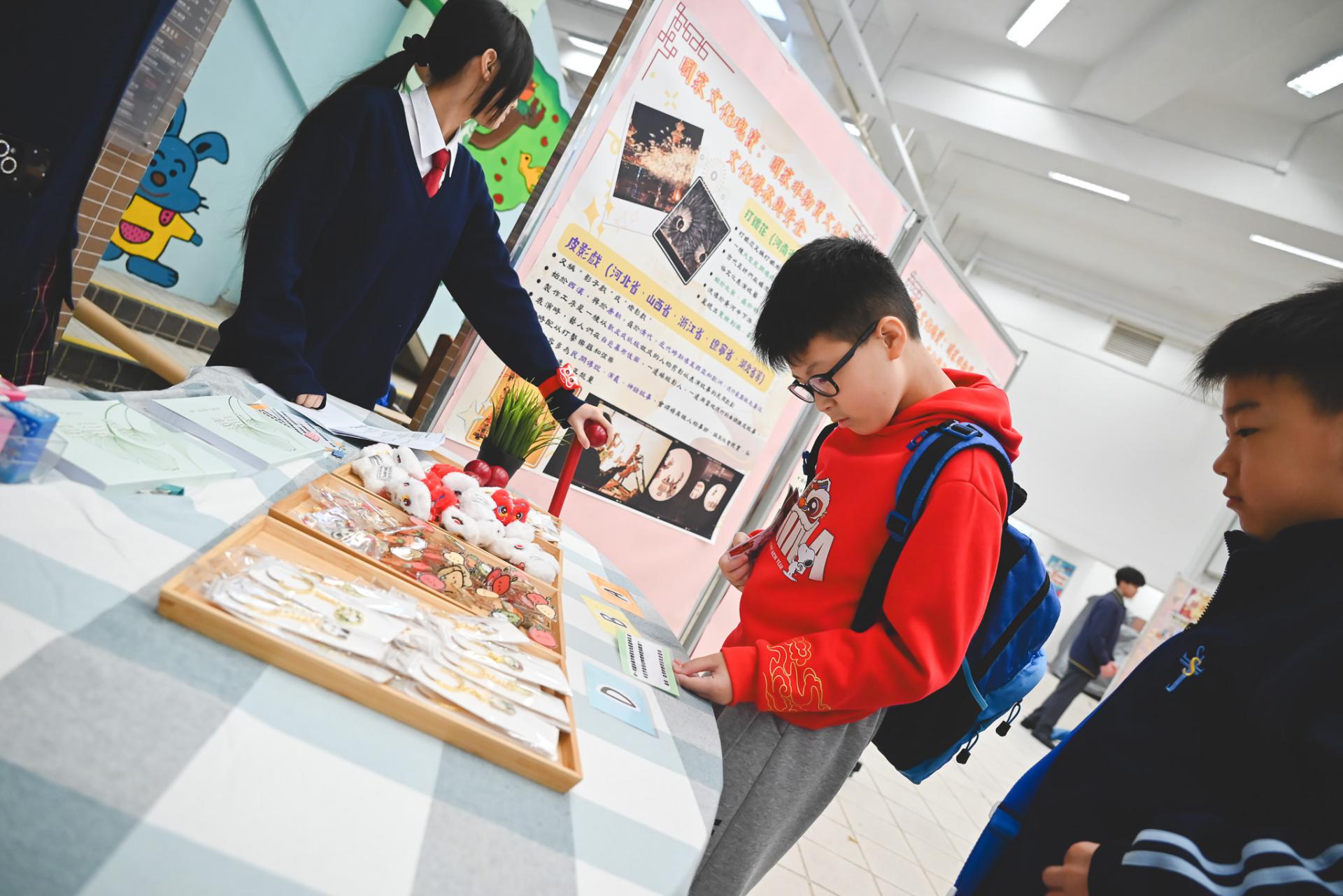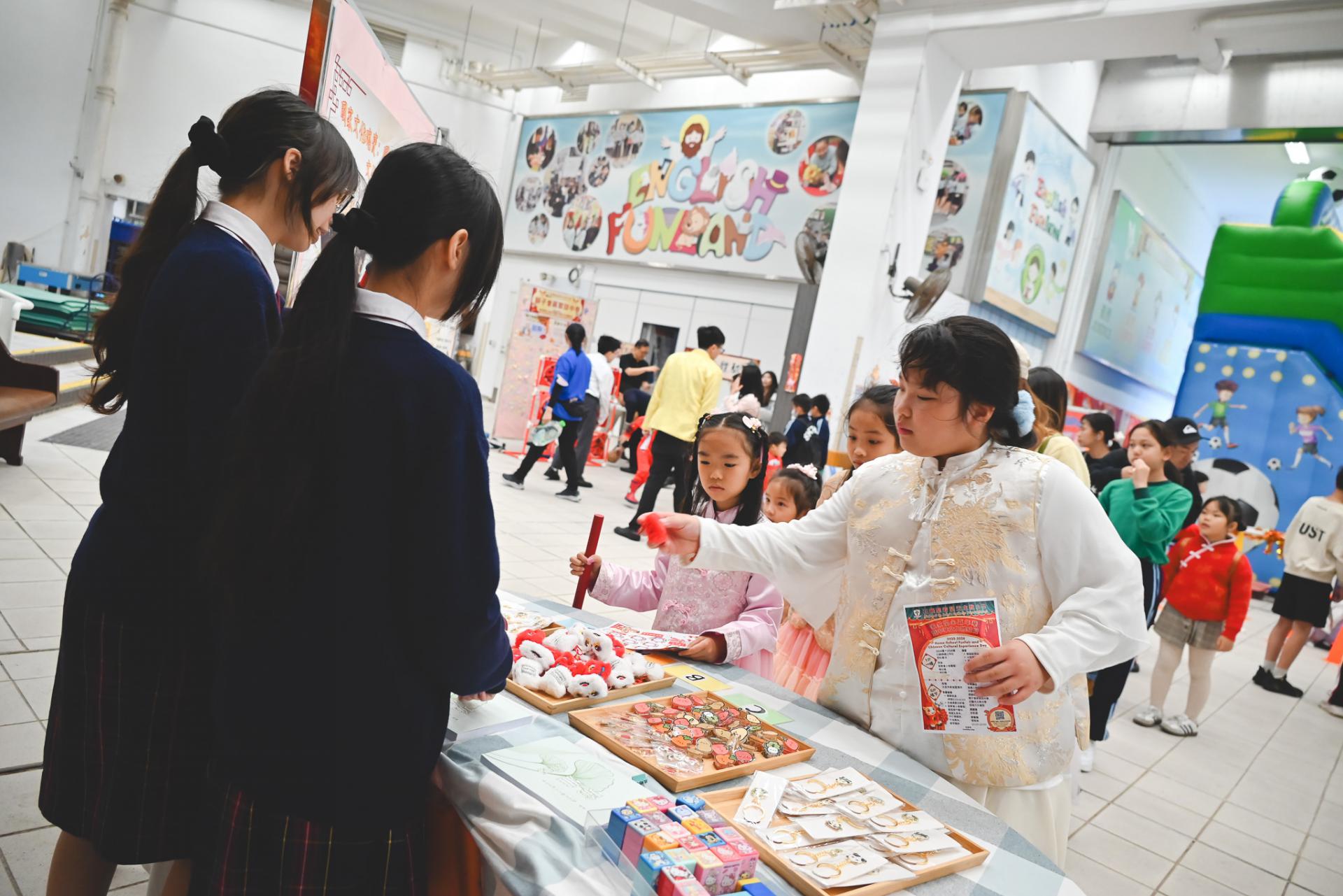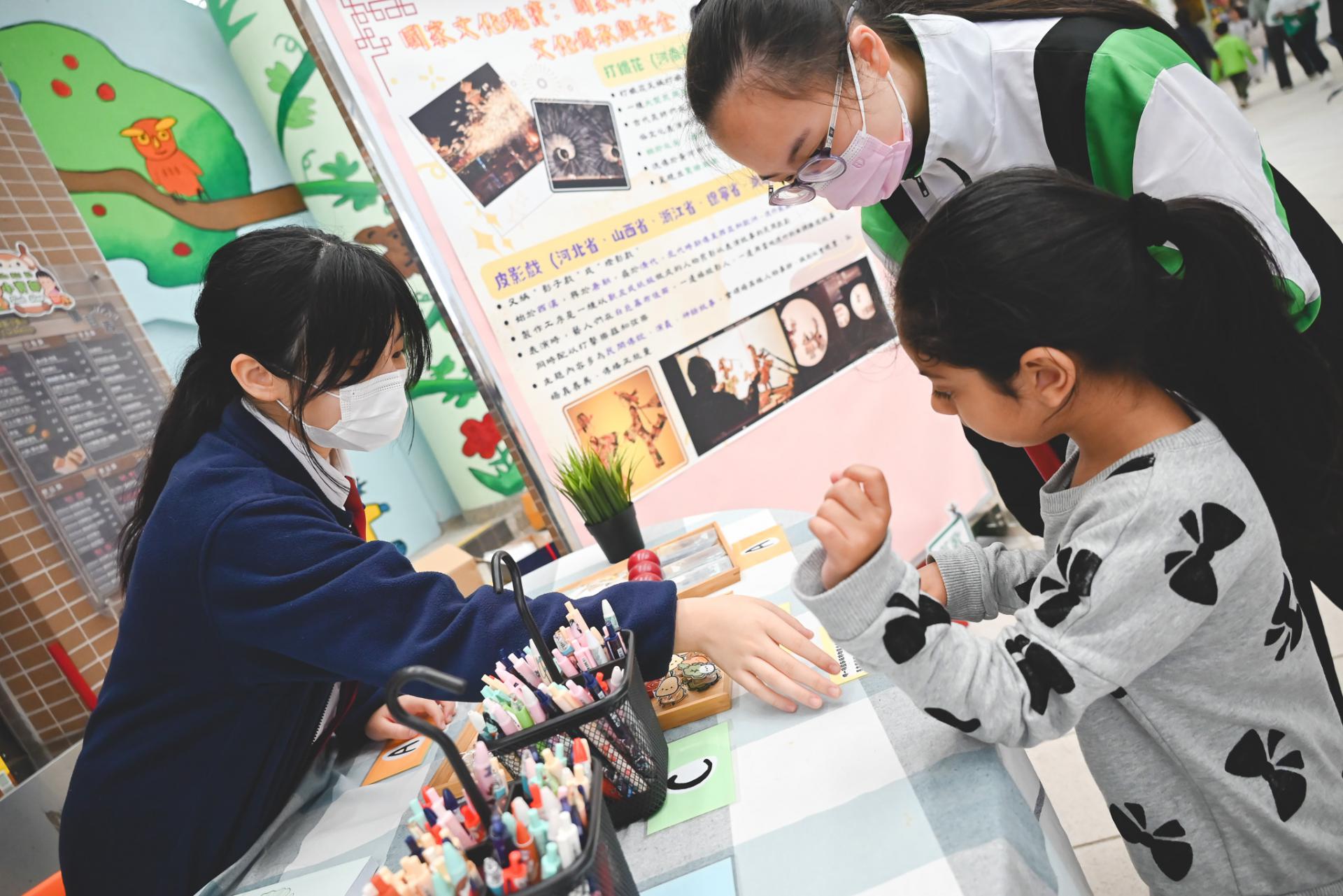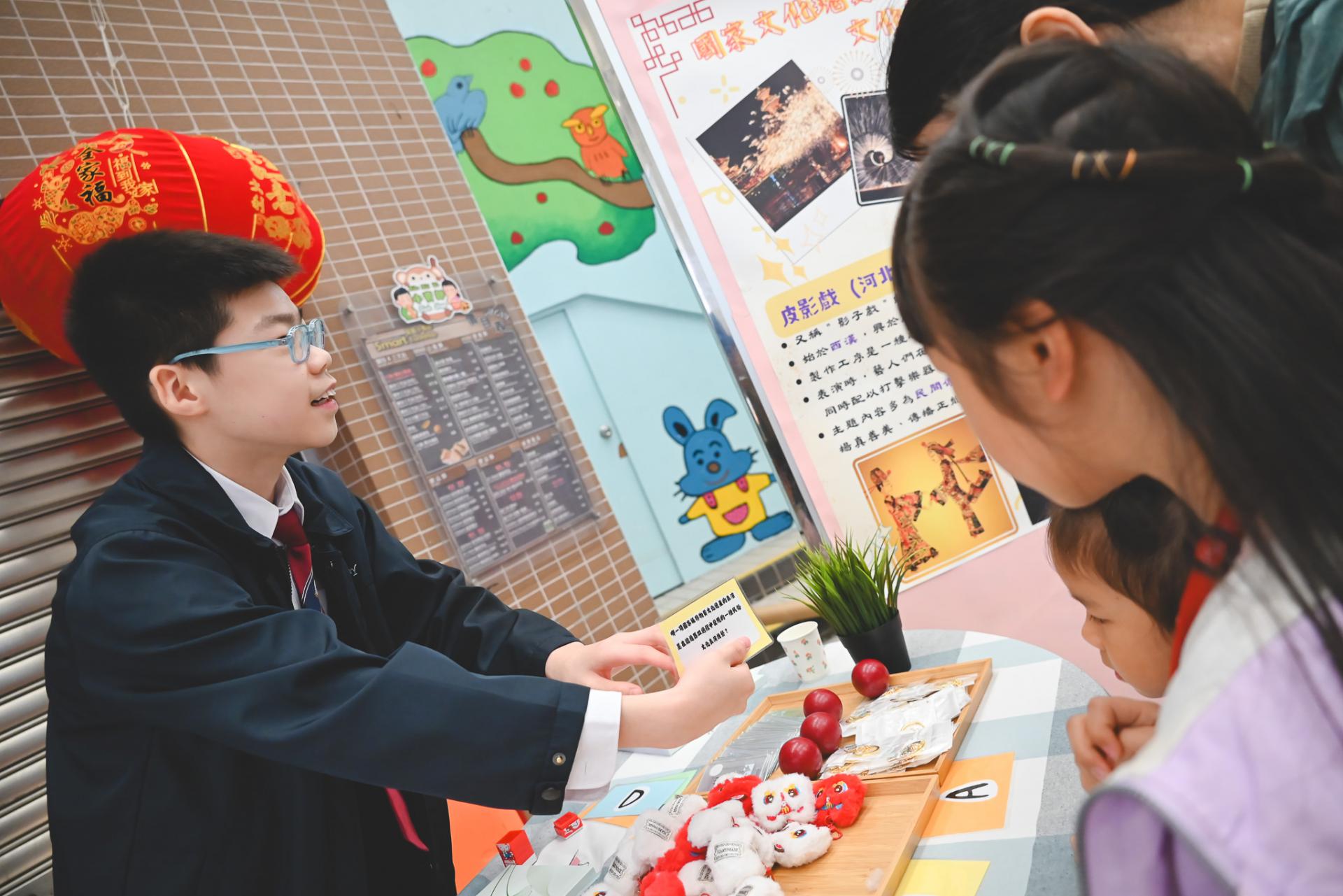 On Saturday, February 28, 2026, our students visited Shek Lei St. John's Catholic Primary School to take part in the "Home-School Funfair and Chinese Culture Experience Day." We set up a Chinese culture booth where participants could experience the traditional game "Chui Wan" to learn about China's intangible cultural heritage. Other elements included experiences such as iron-fire flower making, face-changing opera, Yingge dance, and shadow puppetry. Through these activities, our students helped promote Chinese culture and enhance national identity recognition among students, parents, and all participants.