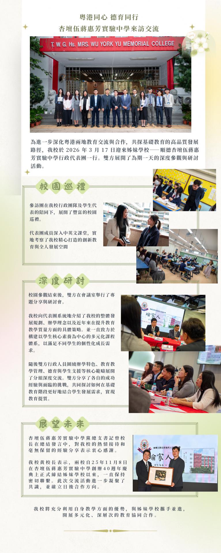 Guangdong-Hong Kong Collaboration: Advancing Moral Education Together Xingtan Wu Jiang Huifang Middle School Visits for Exchange