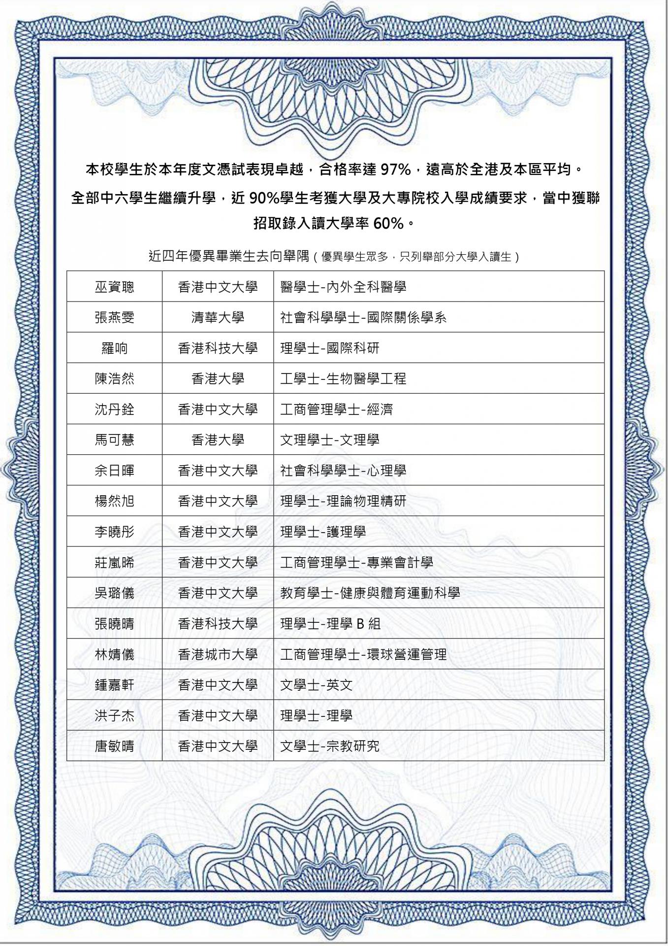本校學生於本年度文憑試表現卓越,合格率達97%,遠高於全港及本區平均。