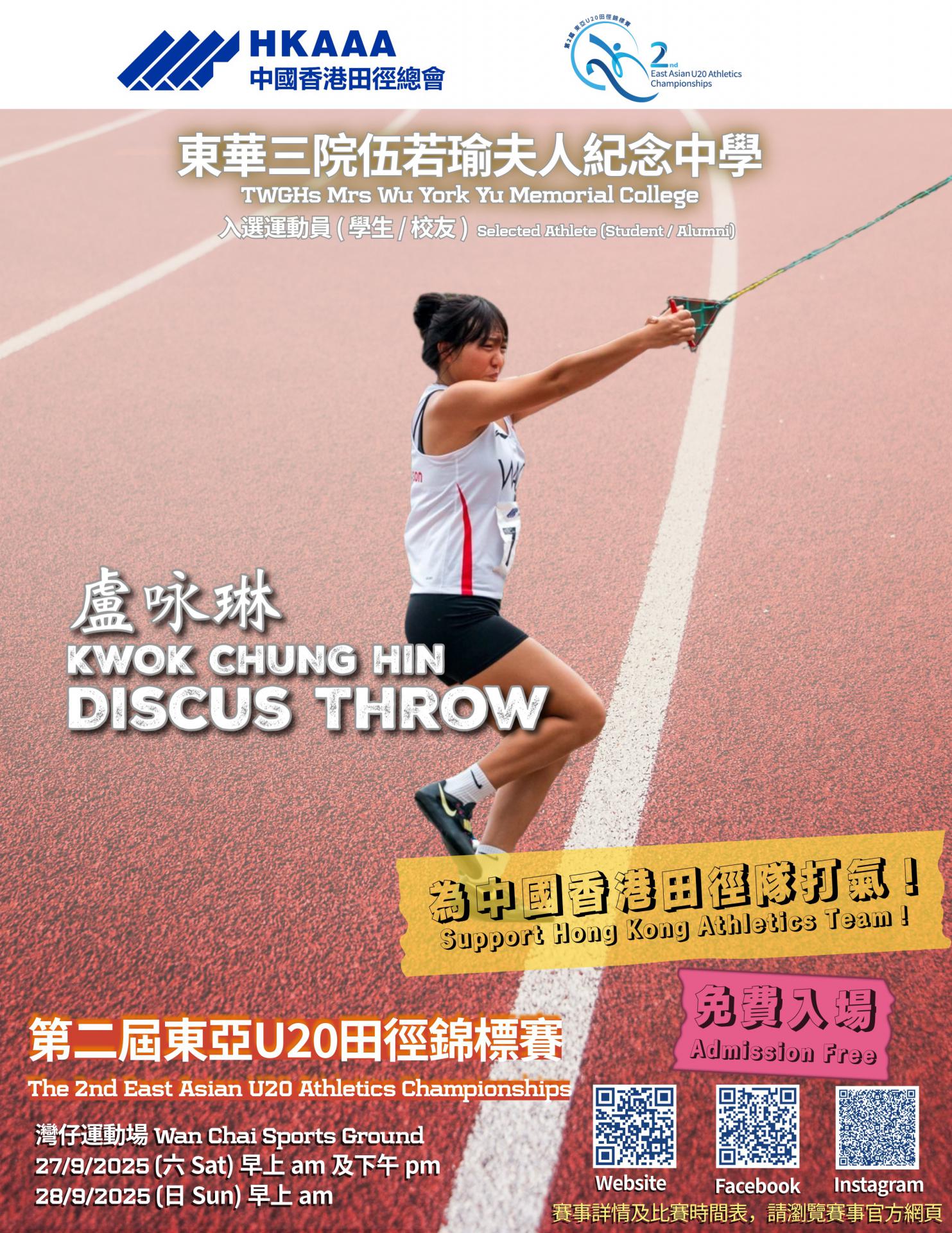 我校學生盧咏琳同學入選第二屆東亞U20田徑錦標賽中國香港代表隊