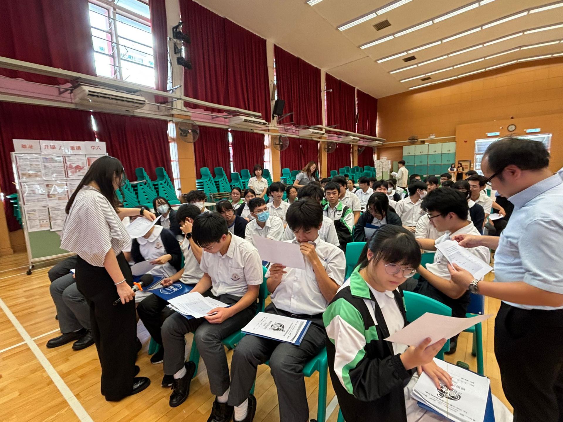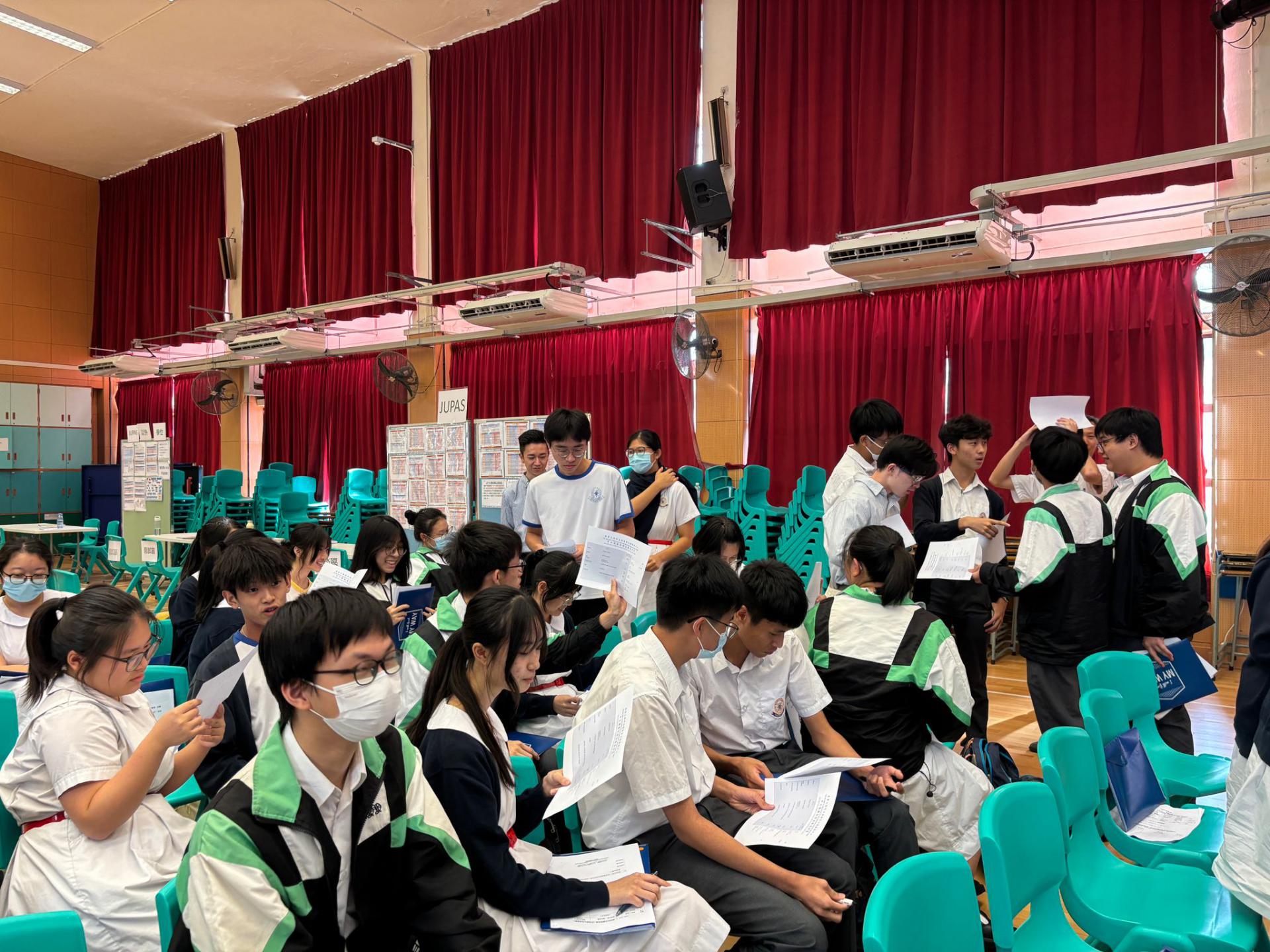 本校升學及生涯規劃組與東華三院「MY WAY 中學生生涯發展教育計劃」合作,在10月17日舉行中六級模擬放榜工作坊,透過模擬中學文憑試放榜後的情況,使同學更能掌握整個流程,並了解升學就業資訊及體驗即時面試,以提升他們對升學就業規劃的能力。