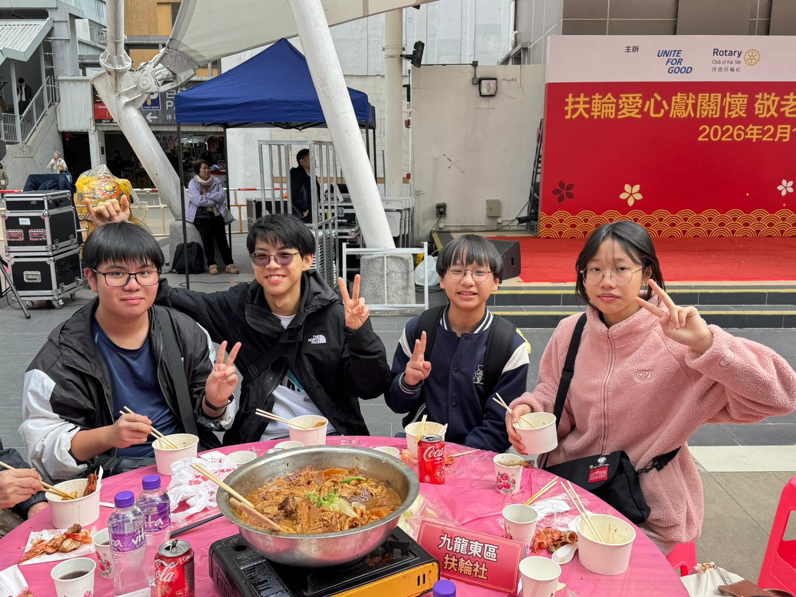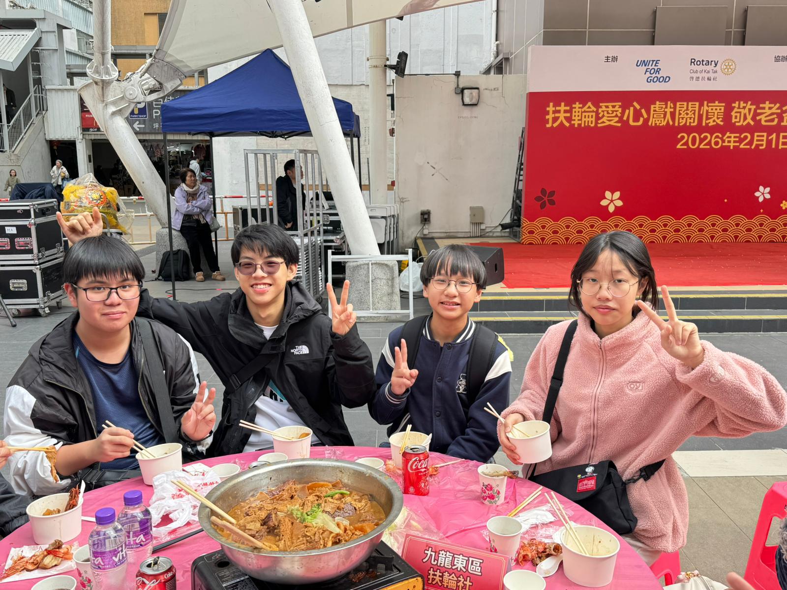 為迎接新年及表達關懷,本校生命教育組聯同啟德扶輪社扶少服務團,於2026年2月1日參與啟德扶輪社「敬老盆菜宴義工服務」。活動讓同學親身走入社區,透過與長者共處、服務及對話,深刻體會「老吾老以及人之老」的精神。同學在佈置場地、接待引座、分送禮品的過程中,不僅學習了溝通與關懷的技巧,更與長者一同欣賞精彩演出,在歡樂的節慶氛圍中,感受陪伴與共享的溫暖,明白幸福可以來自真誠的互動與簡單的歡笑。